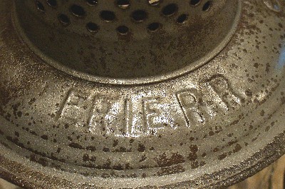 This Armspear lantern was used by the Erie Railroad. The frame lid is stamped with ERIE RR.