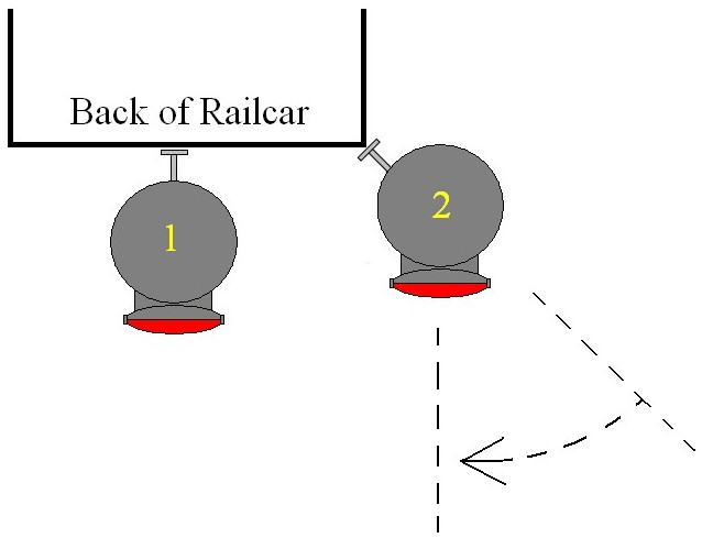 As you can see in this drawing, the lamp could be mounted on directly on the back of a railcar (lamp #1) or on the corner (lamp #2). But since this particular lamp only rotates about 45 degrees to the left or right, it could not be mounted directly on the side because it would not be able to rotate far enough around to shine directly back.
