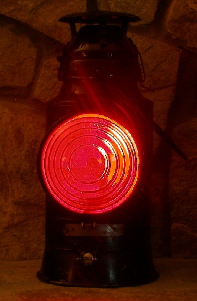 This is a Handlan marker lamp. It has a single red lens about 5" in diameter. They were mounted on the back of a caboose or railcar as an end of train marker. This would serve as a warning for any trains approaching from behind. Sadly, you'll not find any cabooses on trains today (though some might still be found on small, local railroads). Cabooses are a thing of the past, replaced by a flashing rear end device (FRED). Passenger cars now have permanently mounted, electric rear marker lamps.