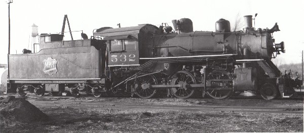 Steam Locomotive No. 532 at El Dorado Springs in January 1953. Photo by: Charles Winters.