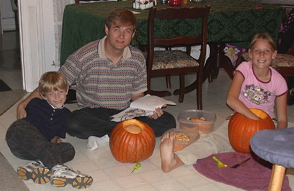 For Halloween 2005, we carved our first jack-o-lanterns. The kids were pretty excited about getting the pumpkins. And of course we went out trick-or-treating. It was a perfect night, with the planet Venus blazing in the west, and Mars blazing in the east. We had a blast, and got a good haul of candy. Here's a few images from our Halloween fun.