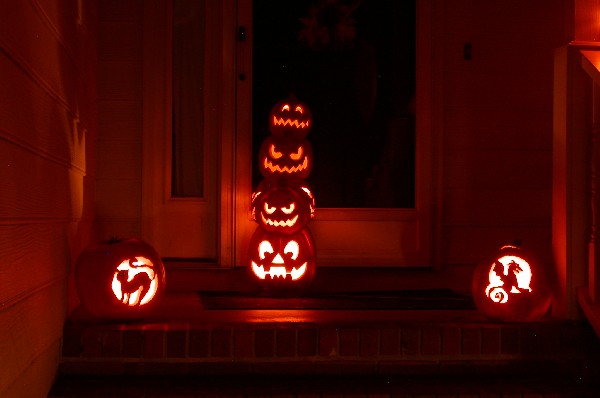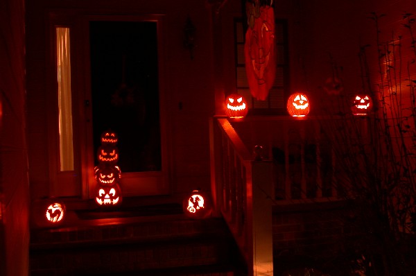 Jack-o-lantern display on front porch: