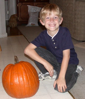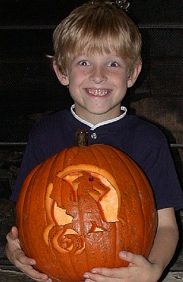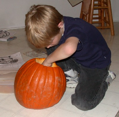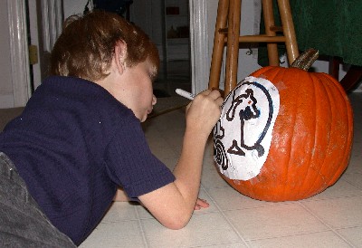 Here's Jonathan working on his pumpkin: