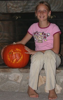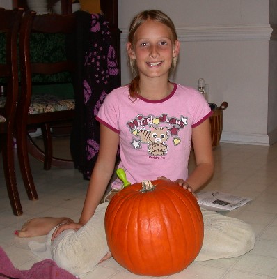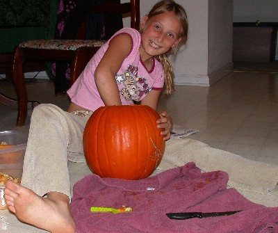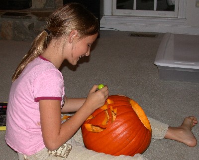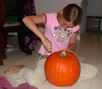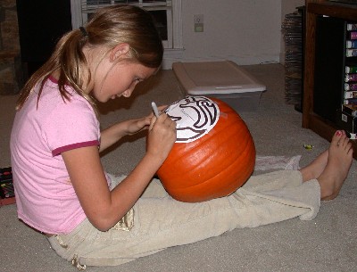 Here's Victoria working on her pumpkin: