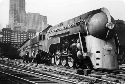 A shrouded New York Central steam locomotive.